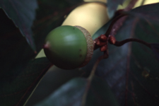 静かな静かな里の秋、お背戸に木の実の落ちる夜は…。秋の実のりは 禧(うれ)しくも、ちょっぴり淋しい気配です。土蔵の壁に影落す秋の日ざしはつるべ落とし、あっと言う間に日が落ちる。秋の夕陽に照り映える、橙色や赤い実もやはりどこか淋しそう。小鳥や虫に、啄ばまれ、種子は土に帰ります。長い眠りにつくのです。
