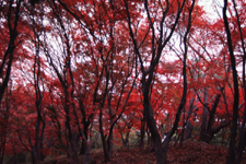 秋雨が一層冷たく感じられるようになる頃、境内のもみじが見事に色づき、裏山は真っ赤に染まる。