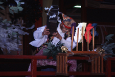 献幣使(けんぺいし)を迎えての祭典、氏子衆による神楽殿での神楽奉納。大滝村三峰神楽と荒川村浅間神楽。