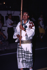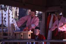 祭には衣装が付き物である。自己を主張するもの、神になるもの、力を合わせるための象徴となるもの・・・。よって、色も鮮やか、柄も凝っていて、見ている人々を楽しませてくれ、祭のムードを盛り上げる調味料として欠かせない。とくに、一世を風靡した秩父銘仙の産地とあって、衣装に対する思い入れはかなりのものがある。祭があるたびに、人と神とがモデルとなって行われるファッションショーで、秩父路はにぎわう。