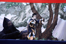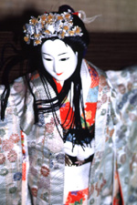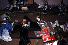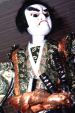 節や操りの技術が進歩してくると卵の殻では物足りなくなり、明治7年江戸人形の頭38個を買い求め、自分たちで衣裳、舞台を作り上演していた。このころから義太夫と説教節を併用していた。頭の大きさは約7.5pであるが、文楽人形より印象は強く単的な表情は実に美しい。