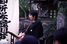 村の古老の言い伝えによると、文久か元治の頃、既に郡内で行われていた芝居を真似て始めたのが起源だそうで、当時は卵の殻に顔を描いて使っていたという。
