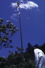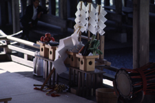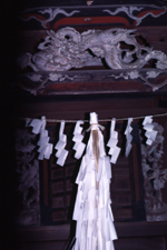 すがすがしい白は神の色。捧げ物の米、塩、御幣の和紙、神宮の装束すべて白である。白鳥、白鹿、白狐、白蛇、白のつく生物は神の使いである。古代の色は白、黒、赤、青の四色。白は清浄、純潔、光明を意味し、穢れを払う色である。又、著(し)る、顕(あらわ)れる事を言い、知る、識(し)る事を意味する。青は生(お)ふ、を意味し、生まれいずることである。穢れを払い生まれ変わる。白と青に込められた古代の祈りと希(ねが)いである。