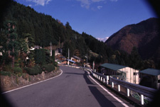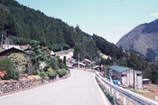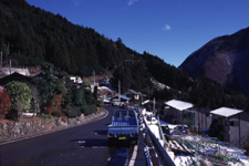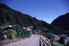 栃本よりは傾斜が緩やかになるが、家々が斜面に点在する。植生は栃本と同じく広葉樹とスギ。