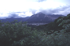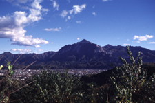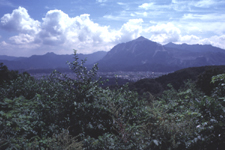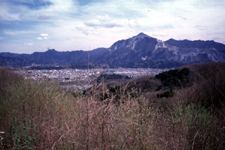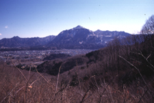 手前の木は栗の木。右手の山は武甲山。中央に秩父市街。