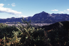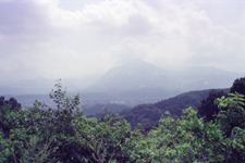 遠くの山に対して、すぐ近くの木々の変化のコントラストが特徴であり、自然に絵画的な構成を形づくっている。