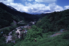 左右の山の傾斜が重なって、中央部分の細い道路や民家が作られている。季節が変わると全体に変わっている。空だけが変化せずに、上から下から植物の緑が変わっている。これが秩父だと思わせる代表的な景観の一つである。