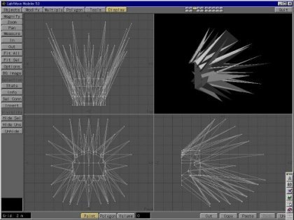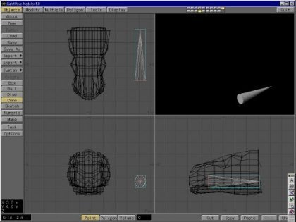 4.角を作る 別のLayerに切替え Object → Coneで円錐形を作りPointで頂点を指定してDragか Moveで引き伸ばす。 |