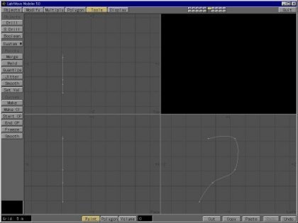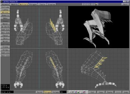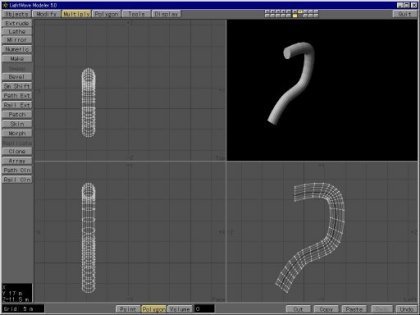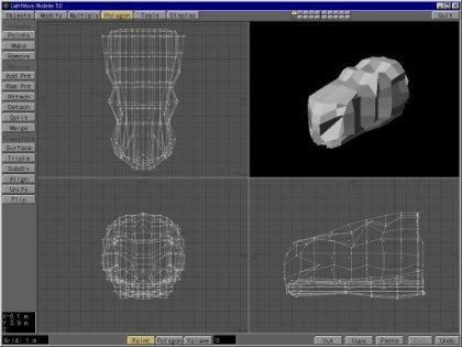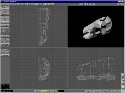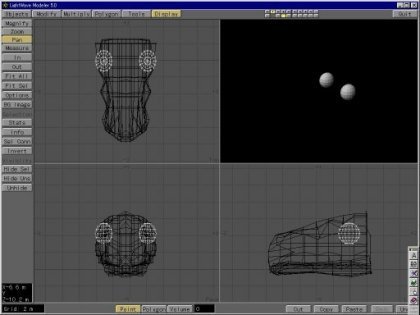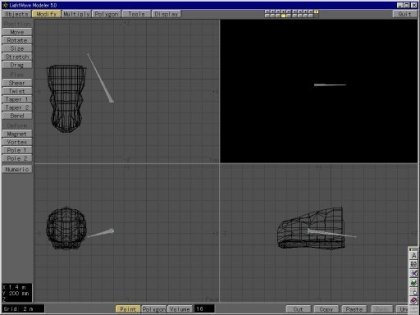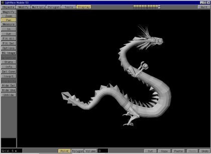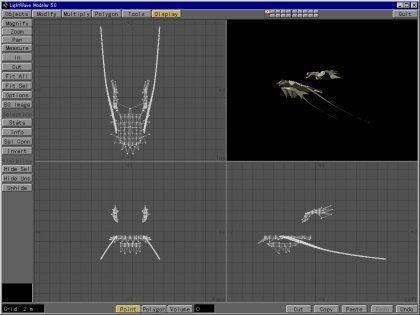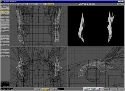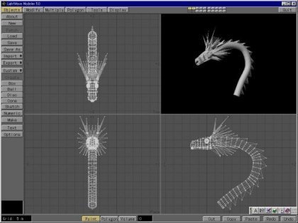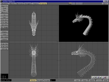 アンダーバーのPointを指定し、全体のポイントを選択し、 Modify → Dragや Move,Stretchを使用して龍の顔の片側半分を作成する。 正面、側面、上面のウインドウを上手に使い馬の顔をイメージしながら変形していく。 |