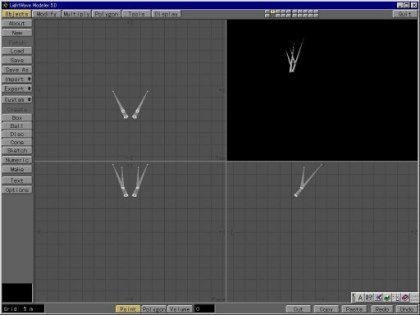 9.腕と手を作る 顔を作成したときと同様に Object→Boxから Modify→Dragで 片部を作成。 |