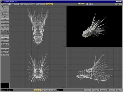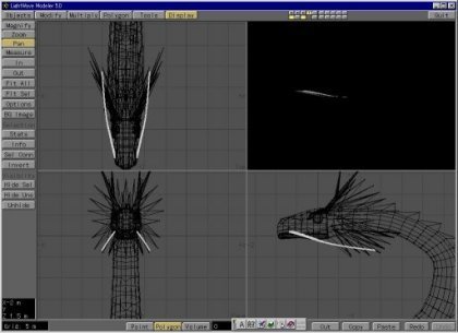 顔を表示し、位置を合わせて Pointを選択し、背の部分の ポイントを一つおきに Modify → Dragか Modify → Moveで 引き出し、背ビレを作る。 |