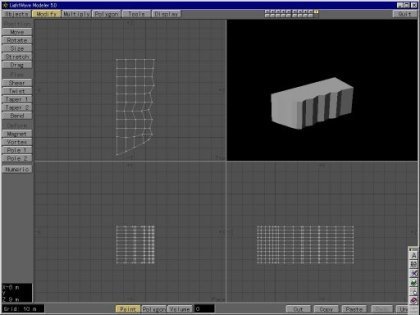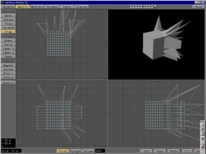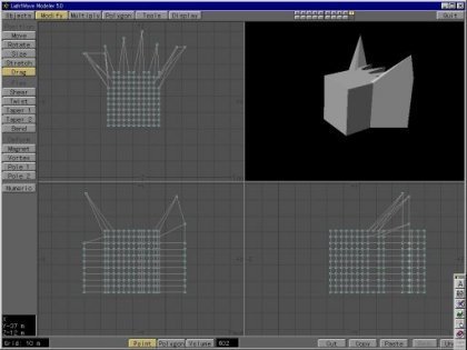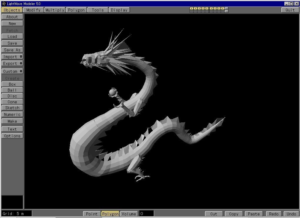 1.龍の顔を作る Object→Boxで四角形を作る。 このときあらかじめNumericでXYZの桝目数を指定し変形しやすくしておく。 |
