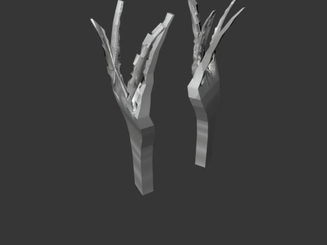 出来上がると単純明快な形であっけないものになってしまったのが残念。しかし作成段階では2本の刃の間隔を