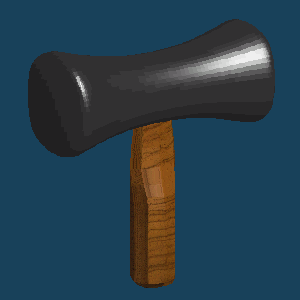 しかし「短い柄の『トンカチ』」は、例えば弱い力でも硬く平らなもので叩く事ができるだけで十分な場面であれば使えないことも無い。そのため、正確には「ほとんど使えない道具」となってしまう。それを避けるために考えたのが、「全面短い柄の『トンカチ』」である。