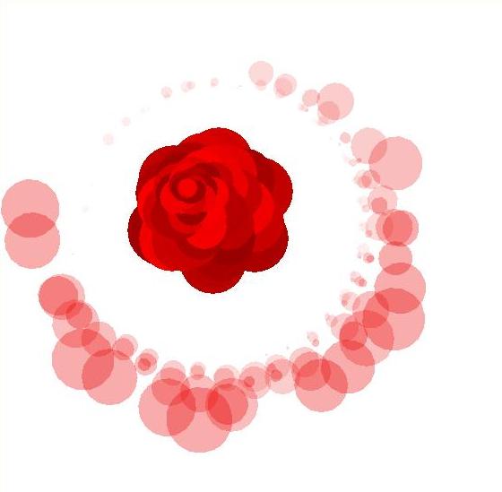 題名 『薔薇』 サンプルを利用し、中央に円を重ねて薔薇を表現しました。色の調節に苦労しました。また薔薇の香りを周りに薄い色の円で表しました。ランダムで薔薇の周りに現れるようにし、香りが常に同じでないという事を表現しました。