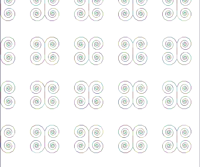 リチュースによって表現された、蔓性植物を回転や拡大リフレクト効果をつかって、一つの模様を作成した。 作成した模様を縦と横に規則的に並べることにより、じゅうたん、ハンカチなどの柄に適用できるような作品となった