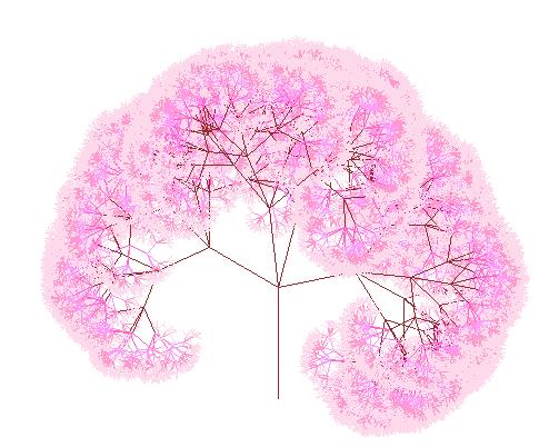 枝の分岐が少ないと満開にはならないと思ったので、変数「ang_r」の数を多くしていき、