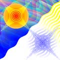 『火と水』 この柄は現代の視覚的な明るさ(都会の町並みや若い人のファッション)をイメージして作りました..[全文] (商品:服やギターなどの柄,ロック系CDのジャケット)
