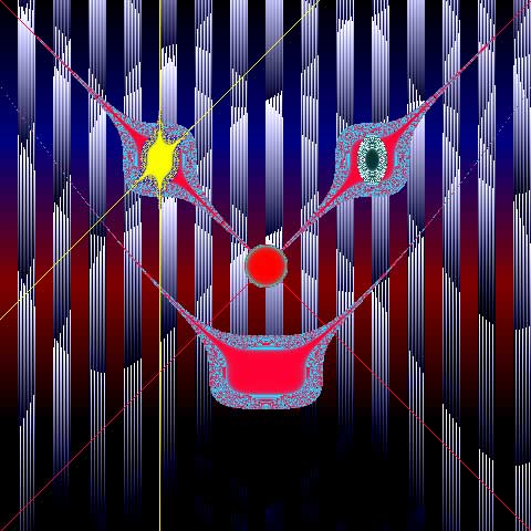 | 『火と水』 この柄は現代の視覚的な明るさ(都会の町並みや若い人のファッション)をイメージして作りました..[全文] (商品:服やギターなどの柄,ロック系CDのジャケット) (02p341) |