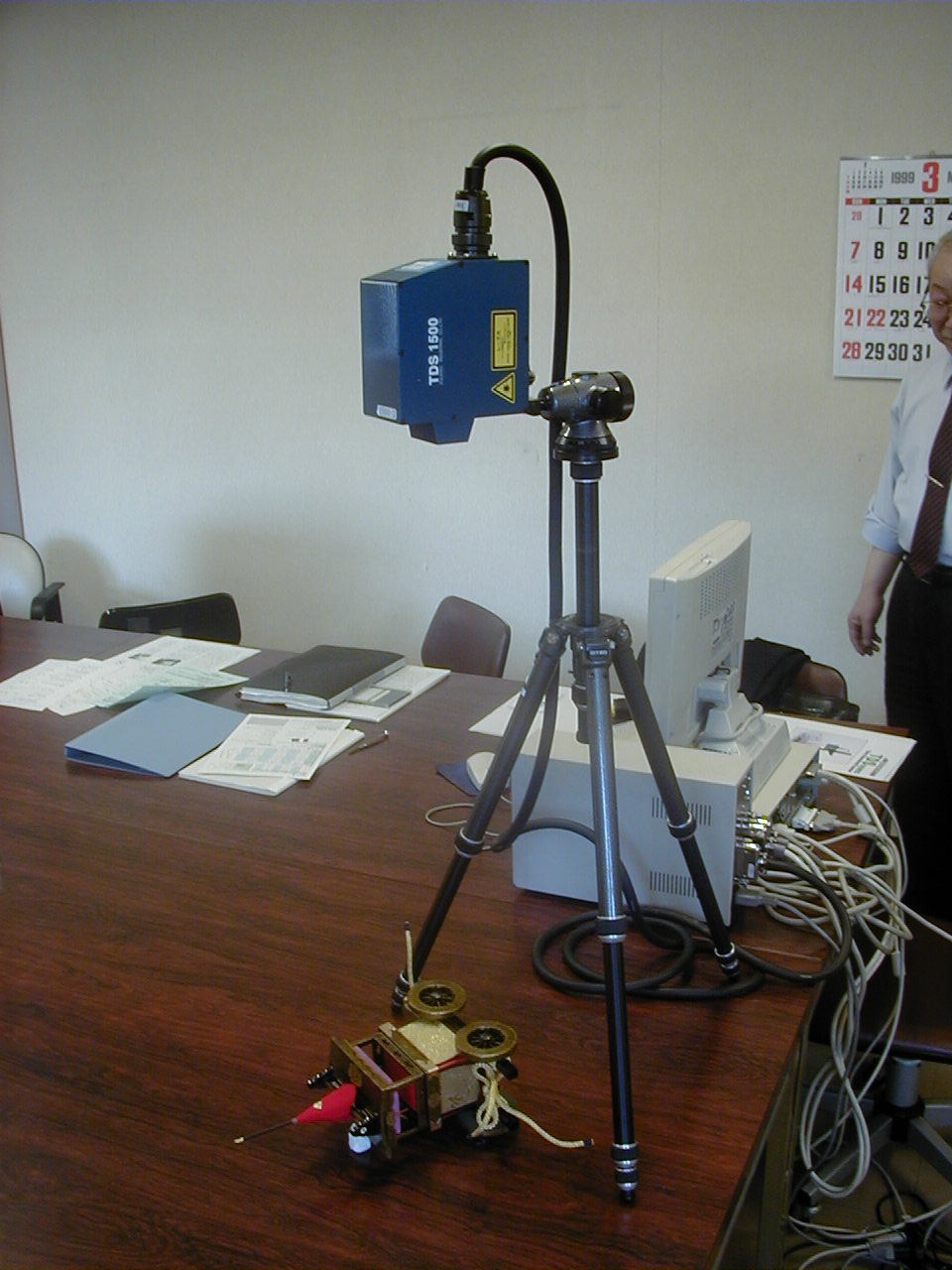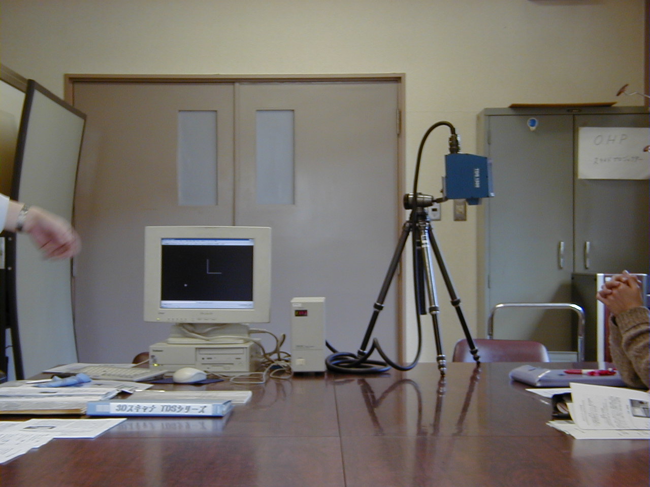 本節では、TDS(パルステック工業)を用いた形状入力実験を行った結果を示す。まずはじめに装置の全体像を示す。そして、各種の3次元モデルを計測した実験結果について述べる。