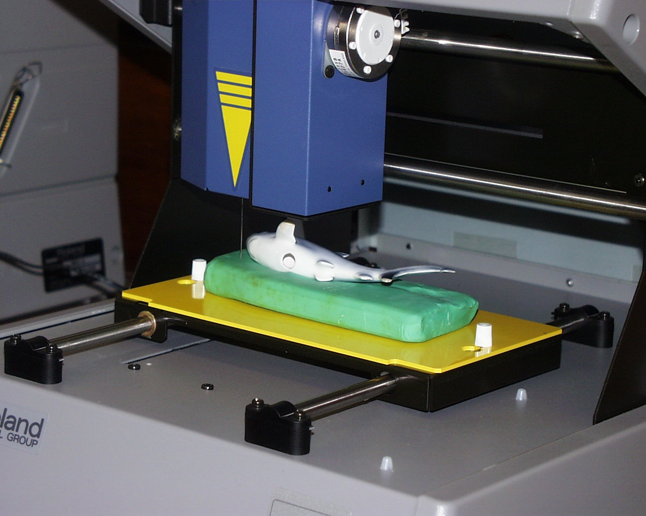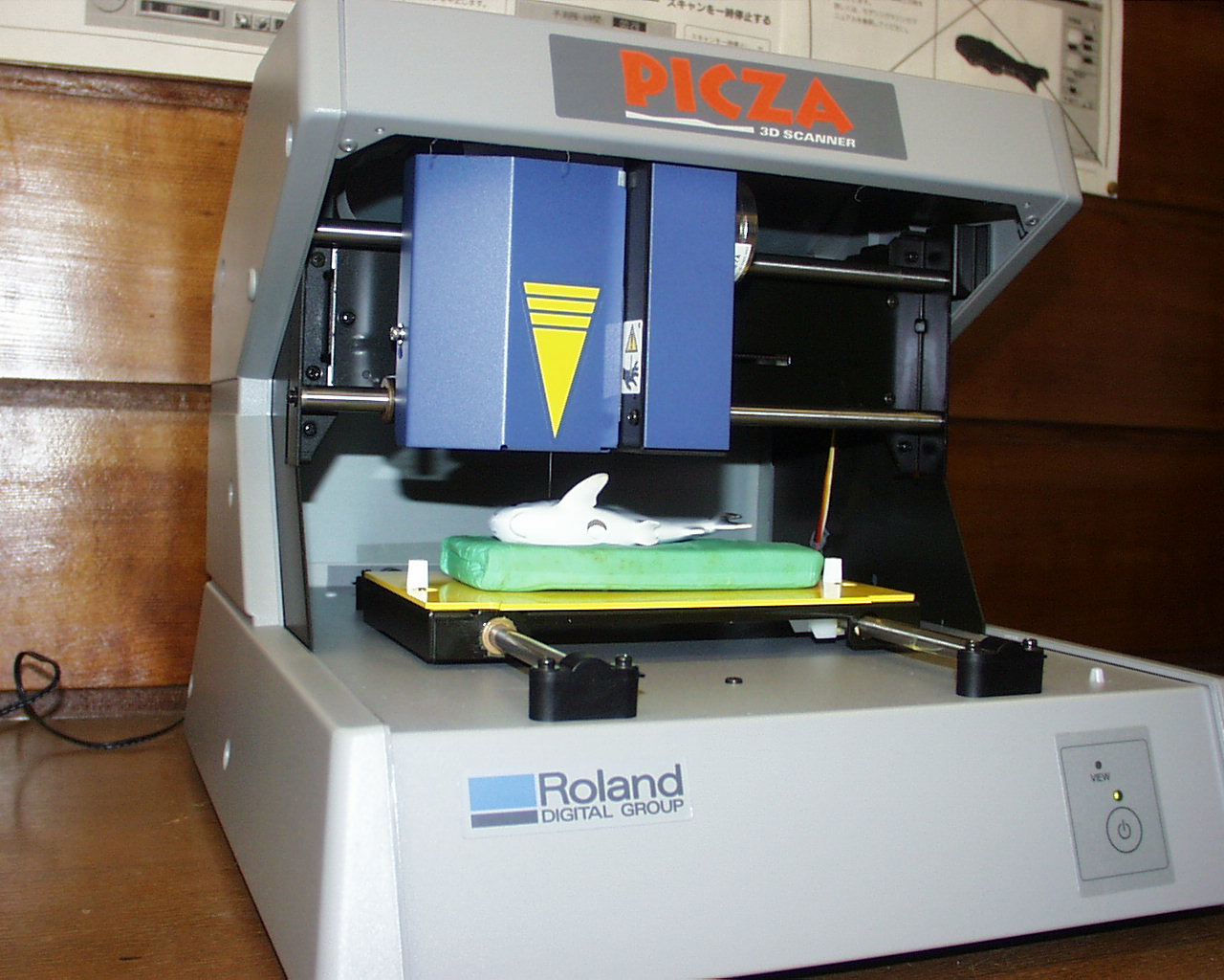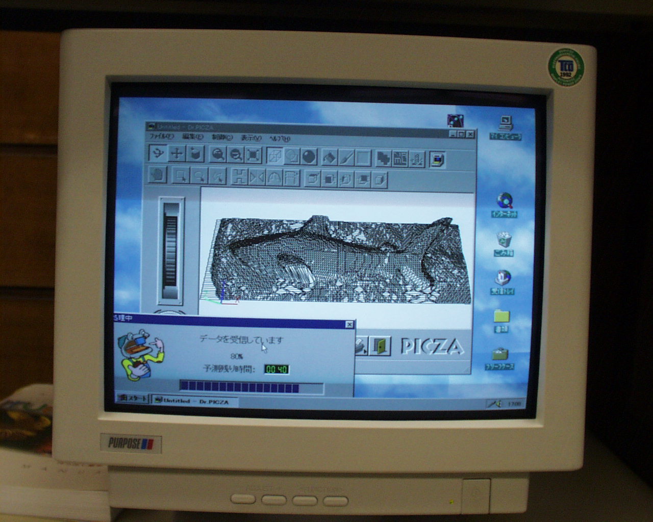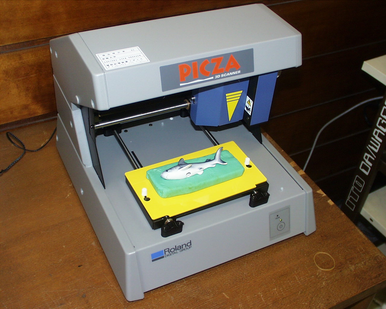 PICZAを利用した形状入力の途中経過をチェックしている様子を示す。 計測に必要なおよその時間がはじめに表示される。粘土の台まで測定していることが分かる。 Z軸だけの計測のために、ヒレの下の部分が計測されていない。